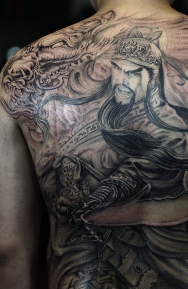 超级威风的满背关公纹身