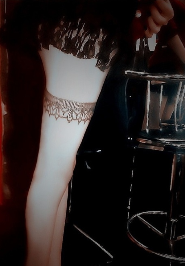 性感长腿上的蕾丝纹身图案
