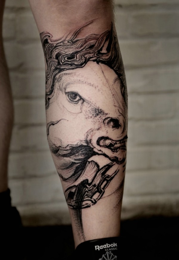 手臂上相当个性的黑白动物纹身