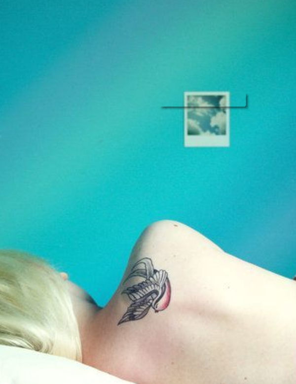 女生后背小鸟纹身作品