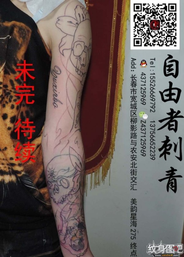 花臂纹身未完,长春自由者刺青