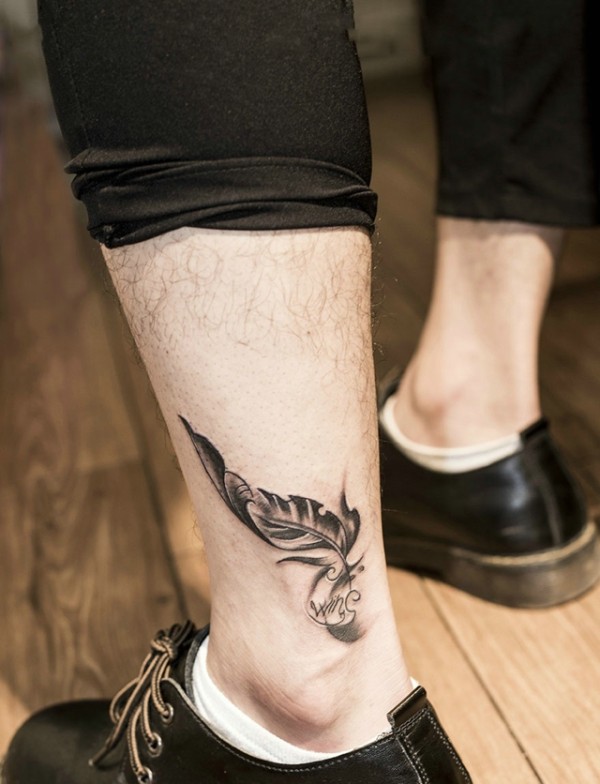 脚踝羽毛文身作品