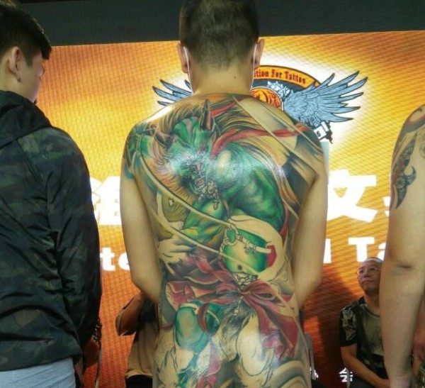 成熟男士满背色彩不一的图腾纹身