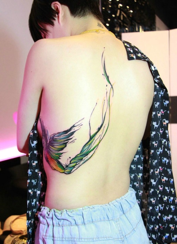 飞落在女生肌肤上的五彩小鸟个性图案纹身