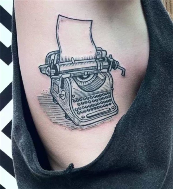 美女胸侧旧式打字机纹身图案