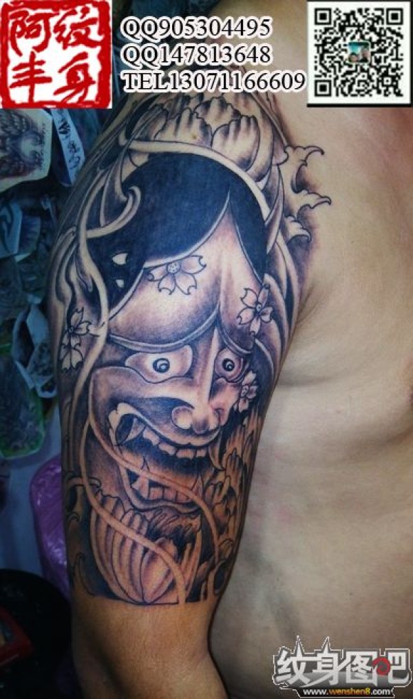 肩部黑白纹身 黑白纹身 般若黑白纹身 丰台纹身