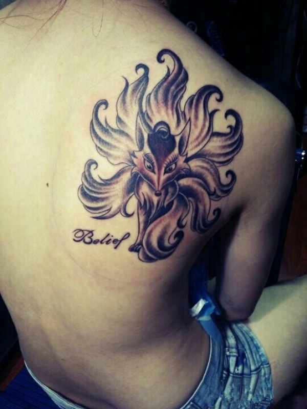 背部好看的九尾狐纹身