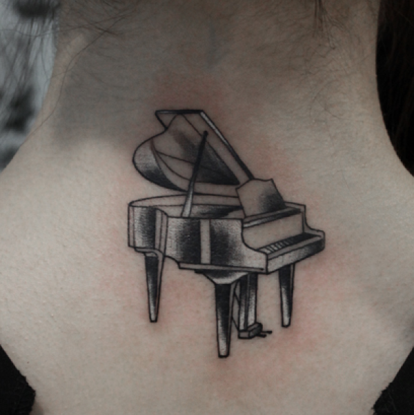 女生后颈钢琴纹身