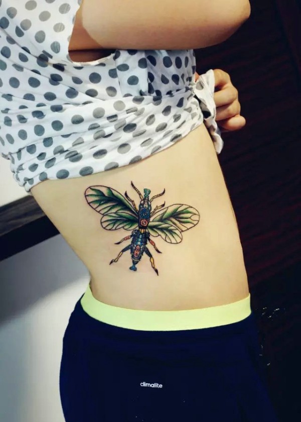 分享一款腰部时尚性感的蝶恋花纹身图案_腰部纹身图案大全_纹身图吧