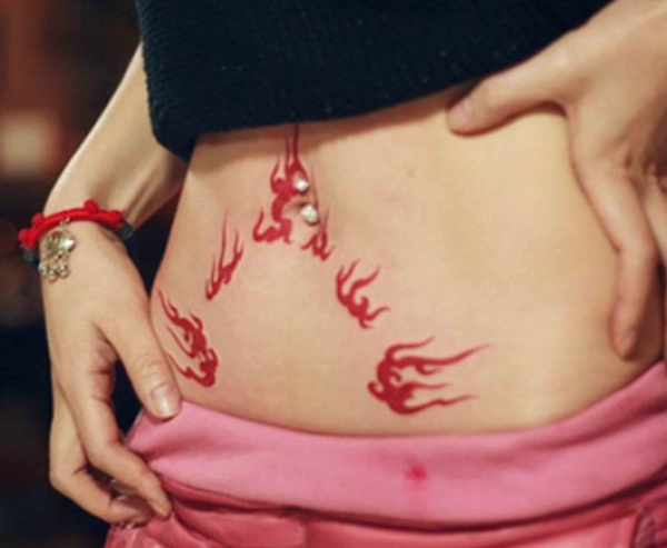女生腹部炙热火焰纹身