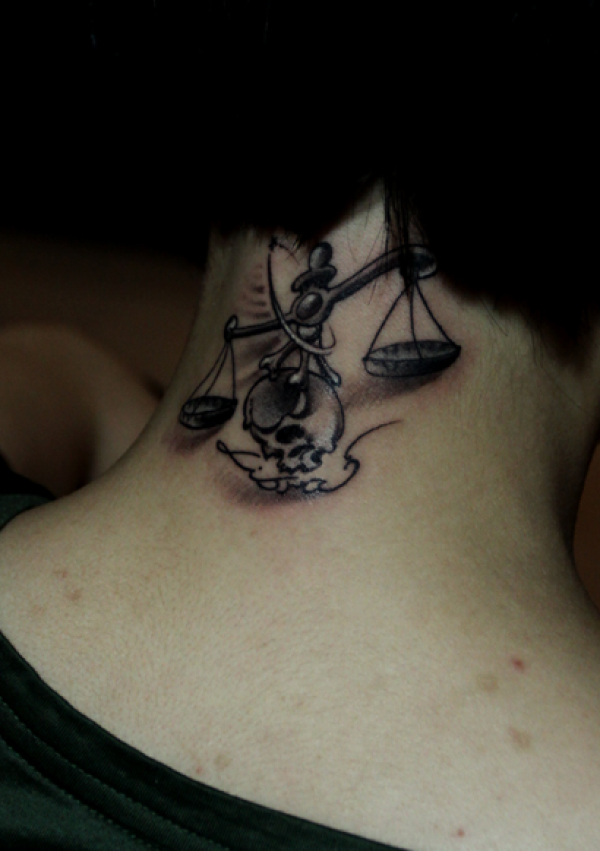 颈部天秤座纹身图案