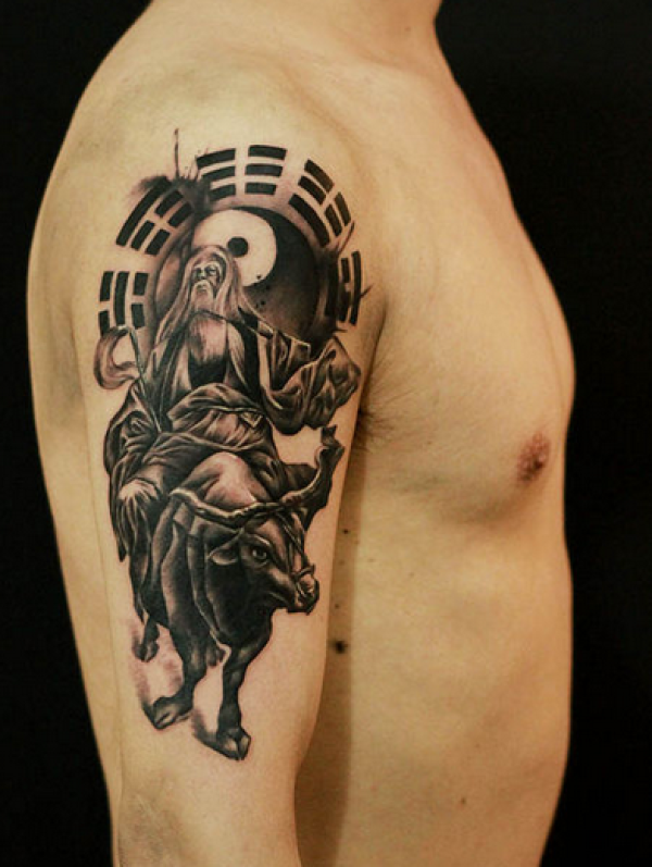 手臂八卦和老子骑牛纹身