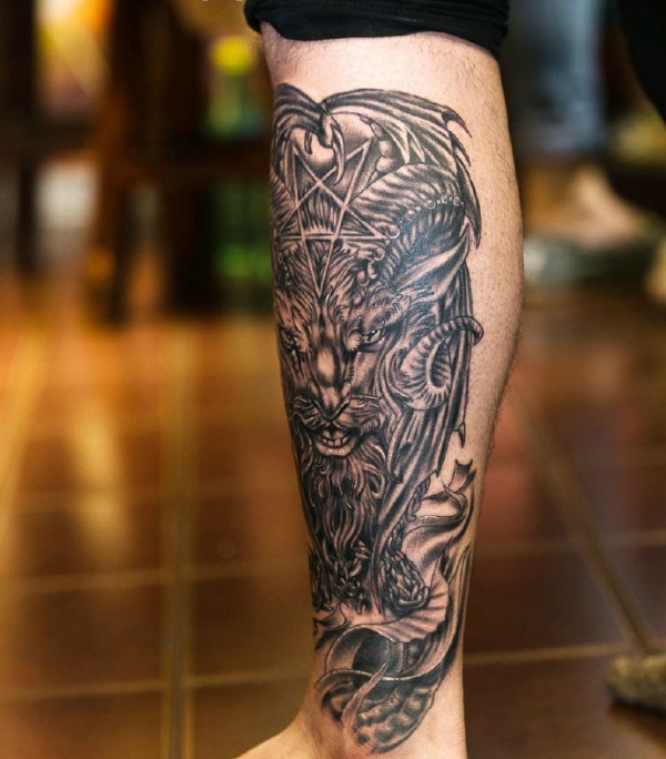 花腿纹身--一组大黑腿纹身图案作品欣赏