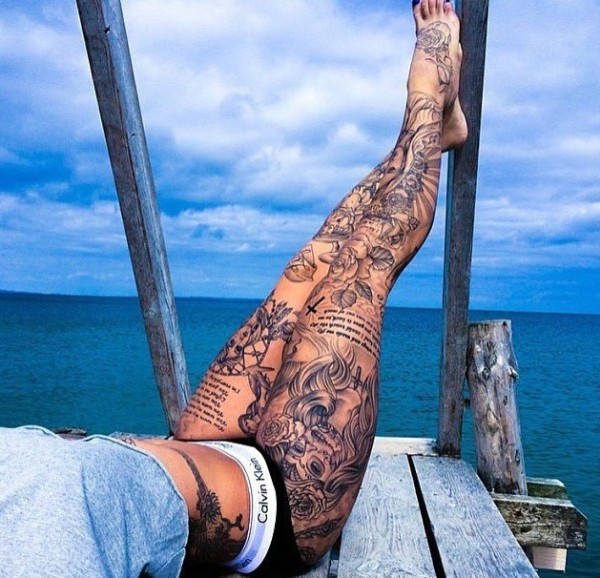 花腿纹身--一组大黑腿纹身图案作品欣赏