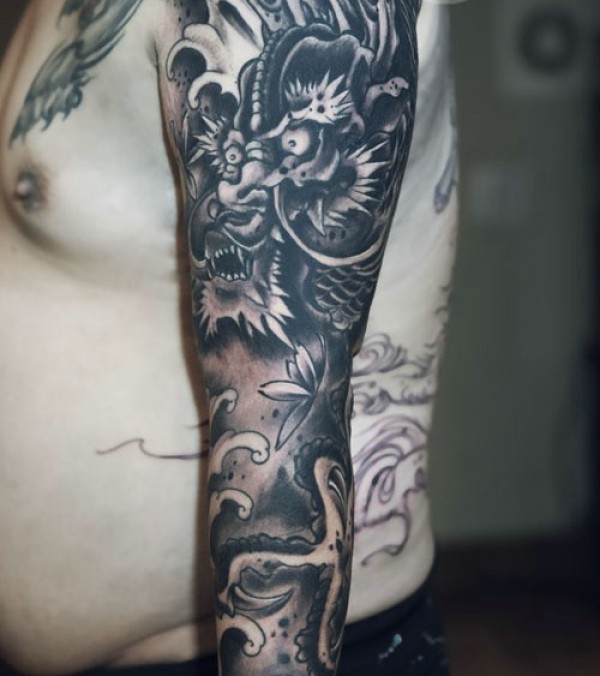 日式手彫刺青作品—半甲龙很感谢客户认可手彫刺青,手彫是日本纹身的手工雕刻技术,时间可以追溯到日本17世纪的江户时代。19世纪,手彫技术被日本黑帮挪用,被用作入会仪式,象征着从此就是江湖中人。在日式传统