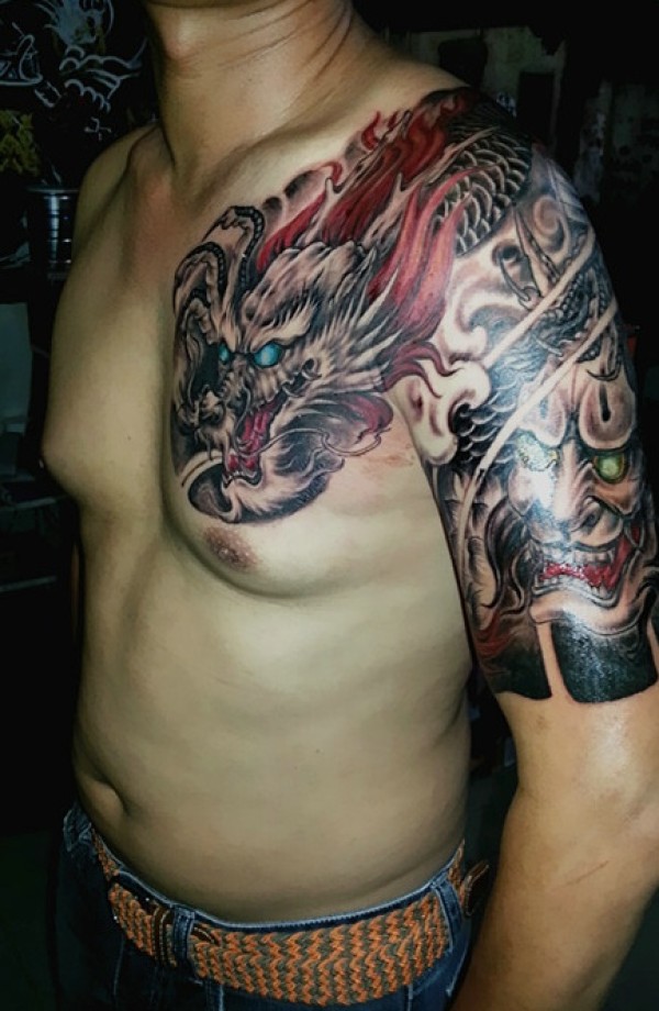 超级完美的半甲邪龙和般若纹身
