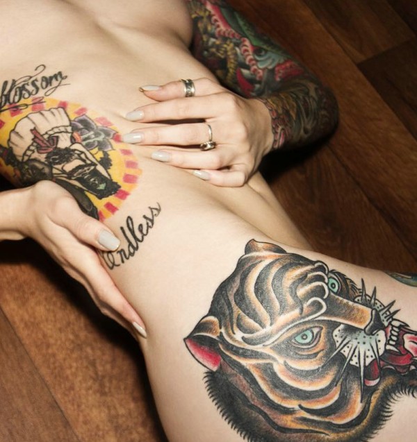 侧腰霸气老虎头纹身_腰部纹身图案大全_纹身图吧