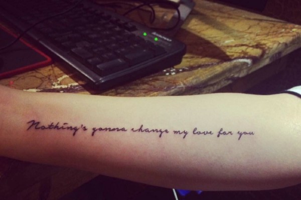 线条英文手臂纹身简单大方