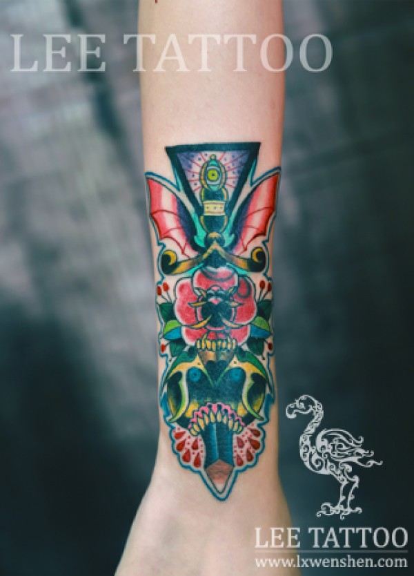 school花臂纹身--一组漂亮的school风格的花臂纹身图案作品