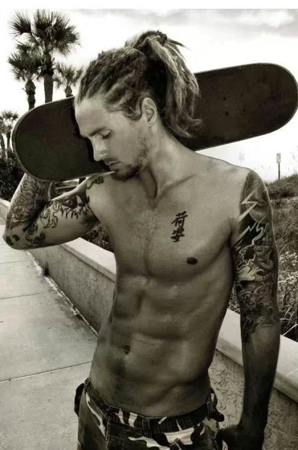 野性豪放的帅气男明星满身图腾刺青