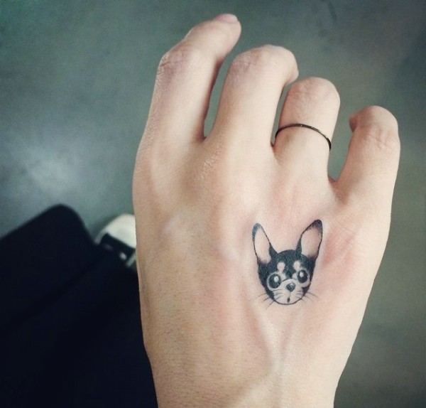 一组花手背纹身图案高调抢眼