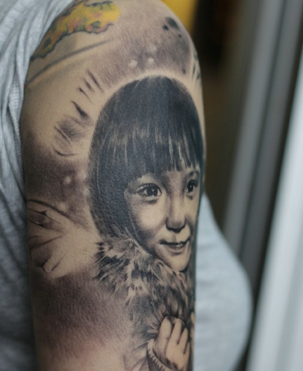 女性肩部肖像刺青_肖像纹身图案大全_纹身图吧