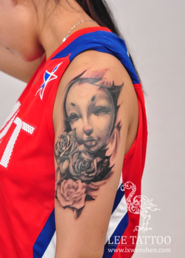 女性肩部肖像刺青_肖像纹身图案大全_纹身图吧