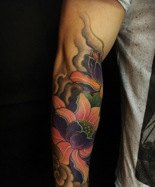 手臂莲花蛇纹身图案_臂部纹身图案大全_纹身图吧