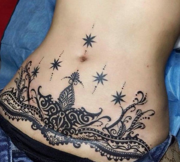 性感美女腹部有着好看的图腾纹身