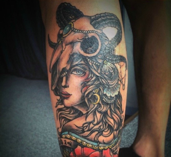 女生人物纹身图案 女生小腿上女生人物纹身图案