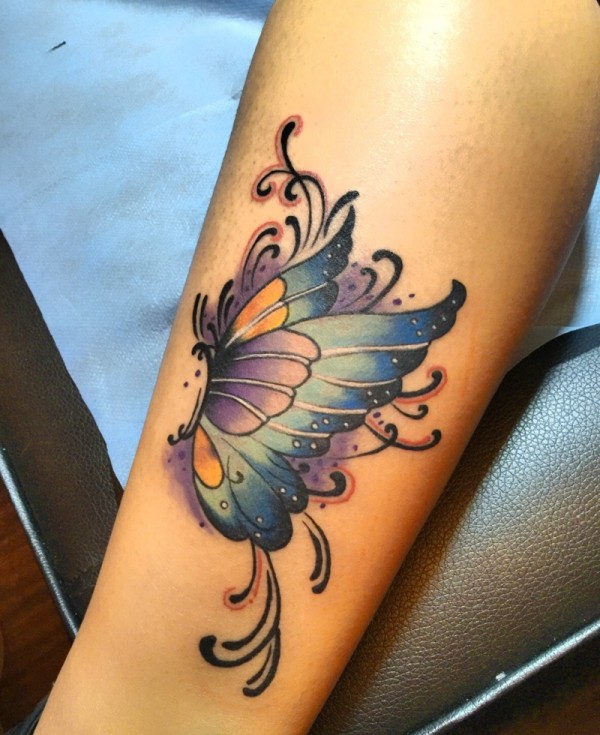 女生最爱的一款漂亮的彩色蝴蝶纹身