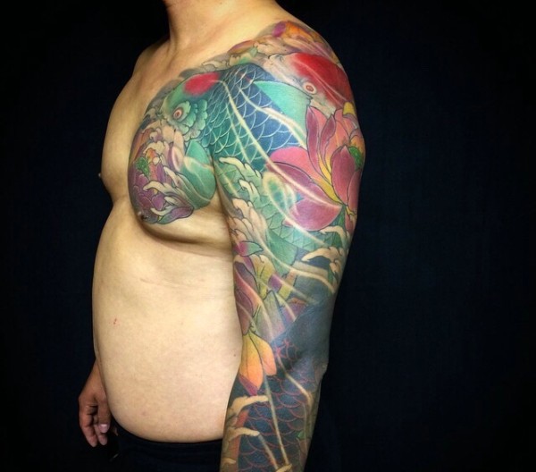 精致个性的彩色半甲鲤鱼纹身
