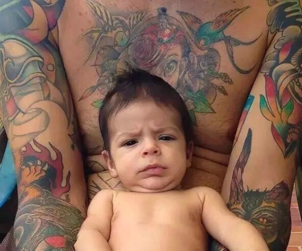 非常有慈爱的年轻父母的个性纹身