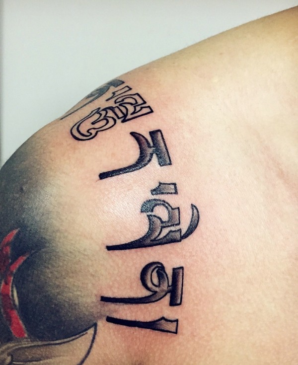 处在肩膀上的简单大体梵文纹身