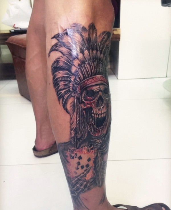 酋长也在玩扑克的另类搞怪纹身