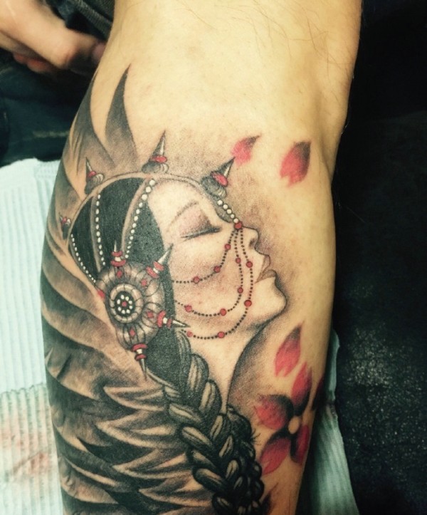 女生人物纹身图案 女生小腿上女生人物纹身图案