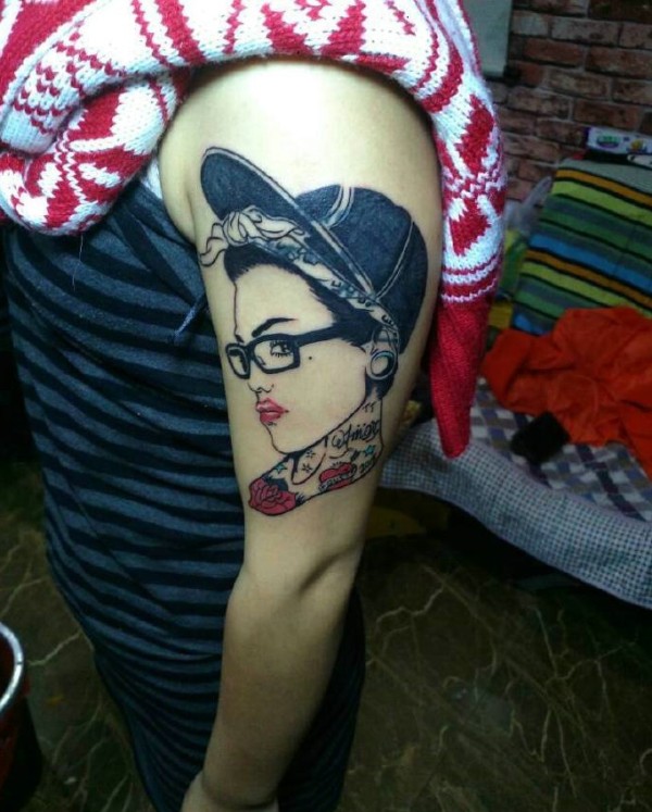 女性肩部肖像刺青_肖像纹身图案大全_纹身图吧