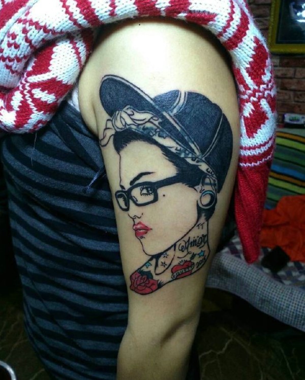 女性肩部肖像刺青_肖像纹身图案大全_纹身图吧