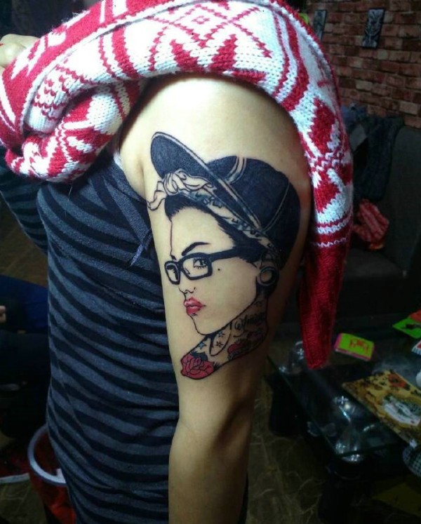 女性肩部肖像刺青_肖像纹身图案大全_纹身图吧