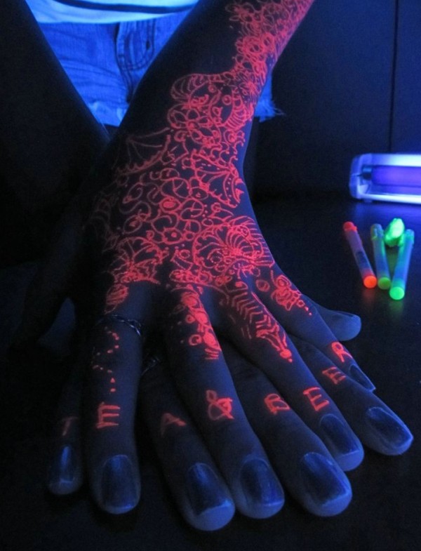 到了夜晚就能闪闪发亮的手臂隐形纹身