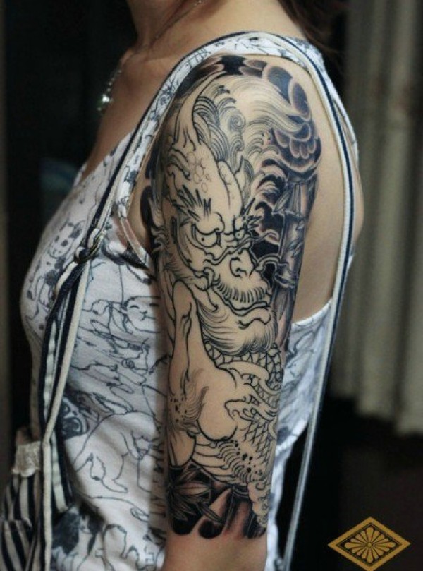 日式手彫刺青作品—半甲龙很感谢客户认可手彫刺青,手彫是日本纹身的手工雕刻技术,时间可以追溯到日本17世纪的江户时代。19世纪,手彫技术被日本黑帮挪用,被用作入会仪式,象征着从此就是江湖中人。在日式传统