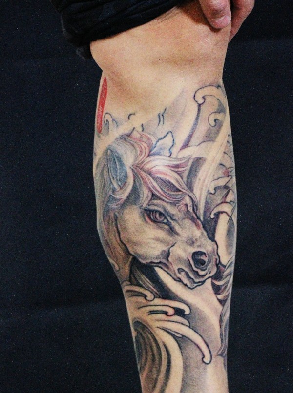 花腿纹身--一组大黑腿纹身图案作品欣赏
