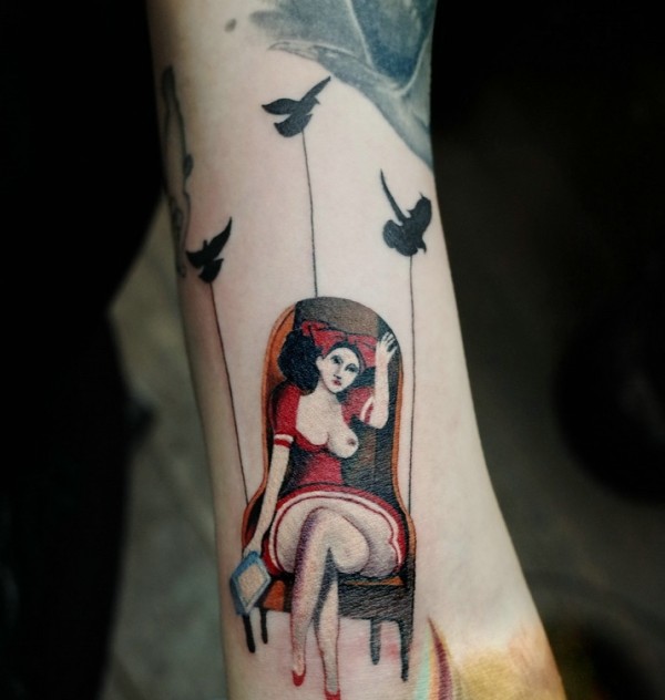 女生人物纹身图案 女生小腿上女生人物纹身图案