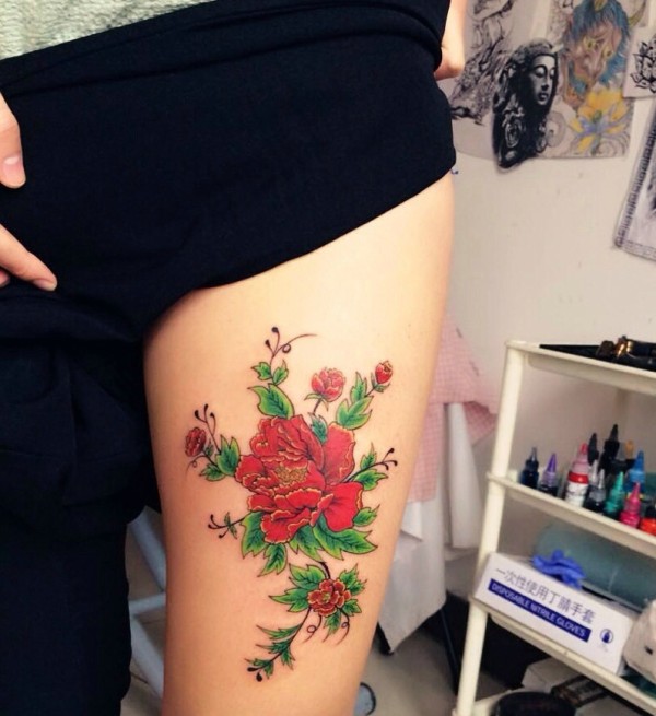 传统花腿纹身--18张传统风格的大花腿纹身图案作品