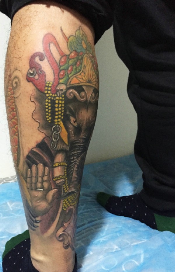 小腿上一款大象纹身图案_腿部纹身图案大全_纹身图吧