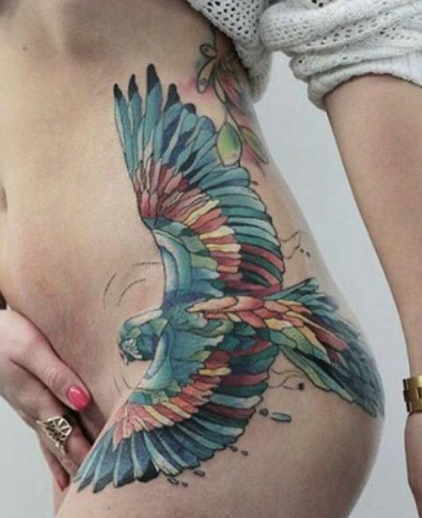 分享一款腰部时尚性感的蝶恋花纹身图案_腰部纹身图案大全_纹身图吧