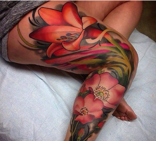 逼真的超现实主义花纹身图案来自纹身师莫拉莱斯