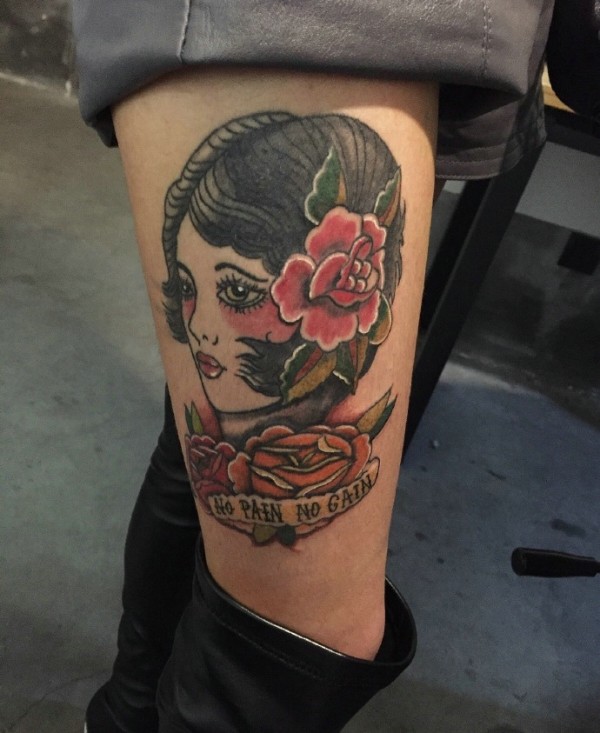 清纯女孩腿上可爱肖像纹身图片_肖像纹身图案大全_纹身图吧