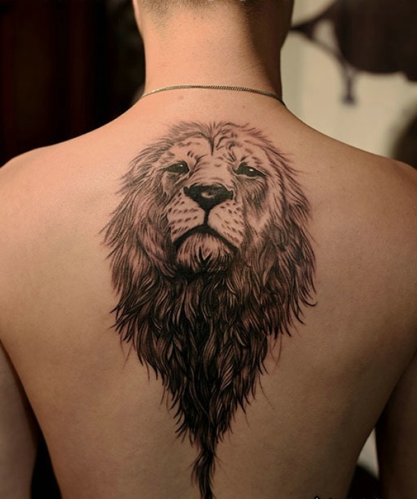 背上有只温顺的狮子纹身