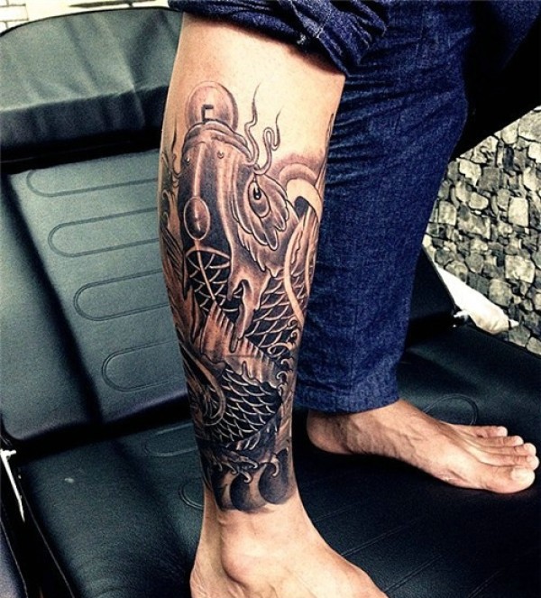 腿部鳌鱼纹身图案_腿部纹身图案大全_纹身图吧